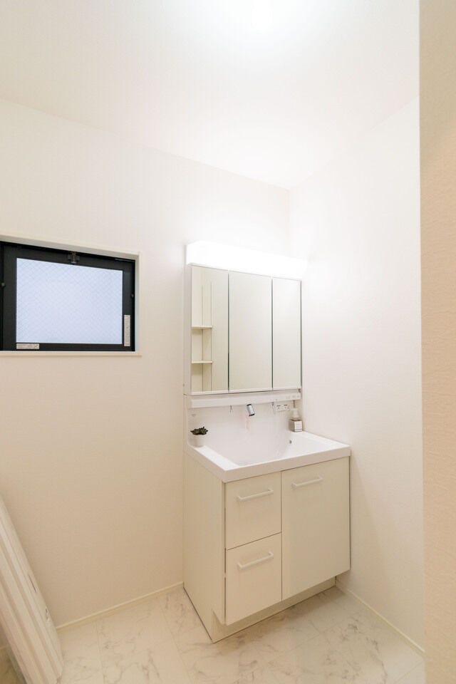洗面所には広い収納スペースも☆お好みの棚を設置するなど使い方色々