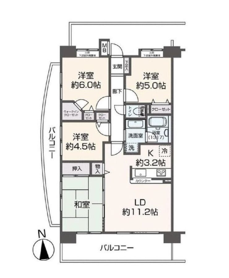 | 主要採光 | 南向 | バルコニー | 南向22.59㎡ |